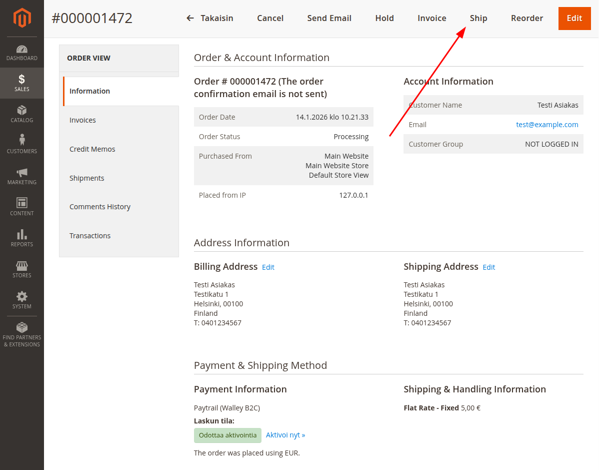 - Automaattisesti kun tilaus toimitetaan ylläpidosta Ship-toiminnolla